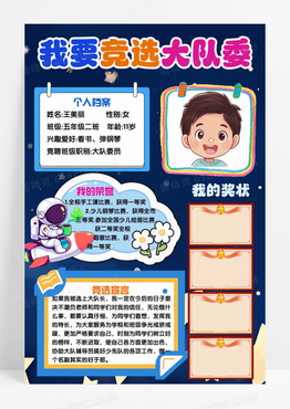 蓝色宇宙风格我要竞选大队委小报手抄报大队委竞选