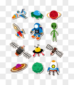 一组矢量扁平风飞船贴纸合集装饰系列七元素