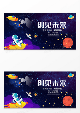 蓝色卡通意境创见未来赛博元宇宙宣传展板