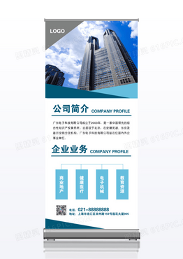 最新商务企业公司介绍时尚蓝色企业宣传z展架科技易拉宝