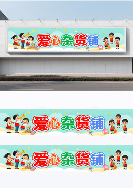 简约可爱卡通幼儿园儿童爱心杂货铺跳蚤市场横幅围挡