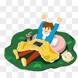 手绘插画小伙伴躲在被窝取暖免抠素材