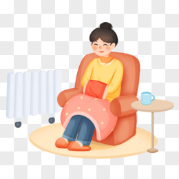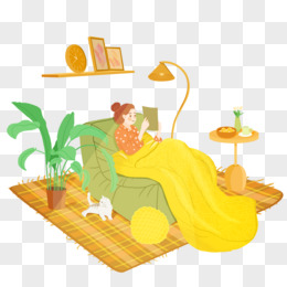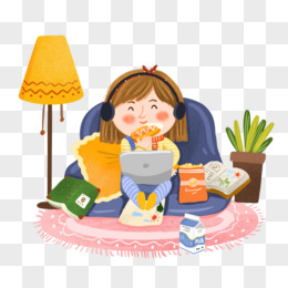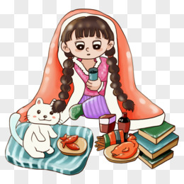手绘卡通冬季女孩宅家吃零食插画免抠元素