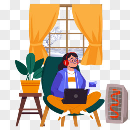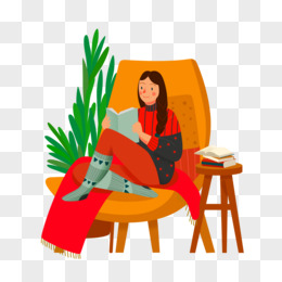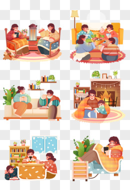 手绘卡通冬季闺蜜宅家看书玩电脑素材