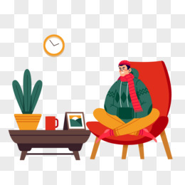 一组手绘插画冬天宅在家里的场景套图合集元素