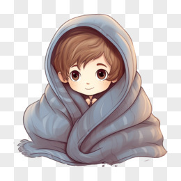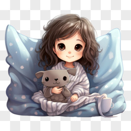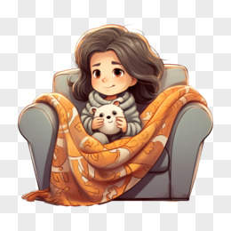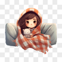 手绘卡通躲在被子里面取暖的女孩免抠元素