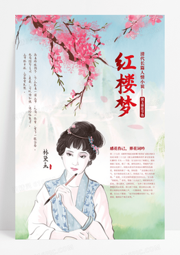 古风唯美水彩红楼梦黛玉葬花海报设计