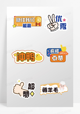一组卡通矢量风表扬鼓励贴纸合集之你真棒素材