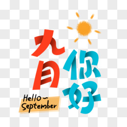 你好九月彩色英文卡通创意免抠艺术字