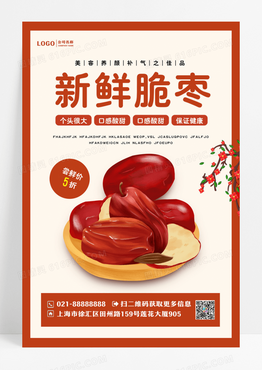 红色水果冬枣海报新鲜脆枣香甜冬枣冬枣海报展架