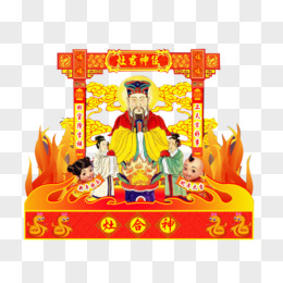 卡通手绘新年男孩女孩迎灶神免抠元素
