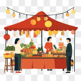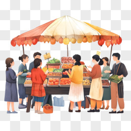 卡通插画风格儿童摆摊集市售卖水果蔬菜免抠元素