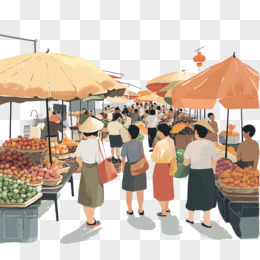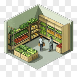 3D立体风格儿童摆摊集市售卖水果蔬菜免抠元素