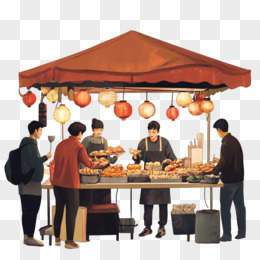 3D卡通插画风格早市卖猪肉小摊免抠元素