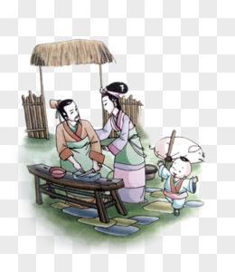 卡通手绘古代曾子杀猪场景免抠元素