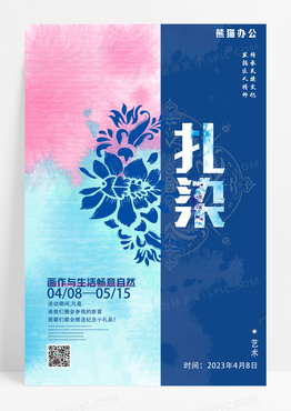 蓝色简约抽象扎染宣传海报