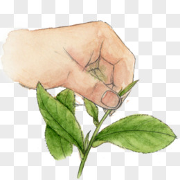 简约手绘手摘茶叶元素