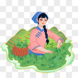 卡通采茶叶女孩人物形象元素