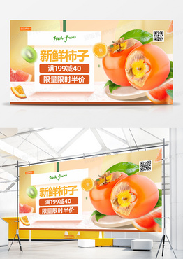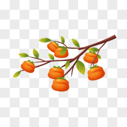 手绘卡通秋天小兔子摘柿子插画场景元素