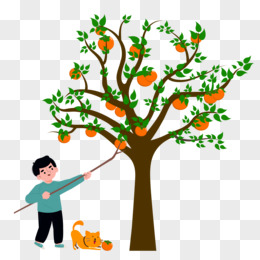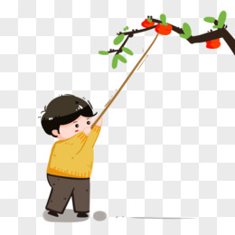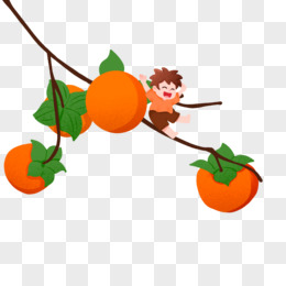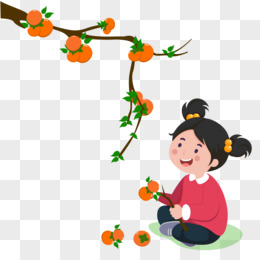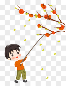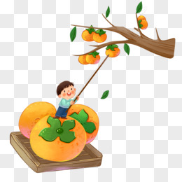 手绘孩子爬树摘柿子创意微景观免抠素材