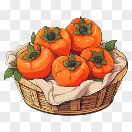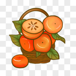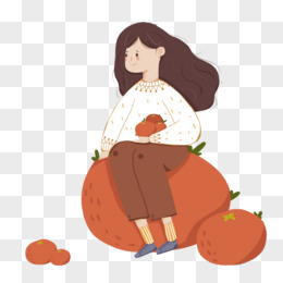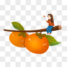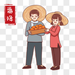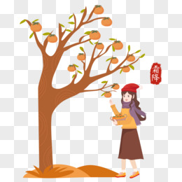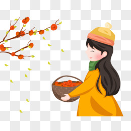 霜降之手绘卡通女孩捧着装柿子的水果篮子