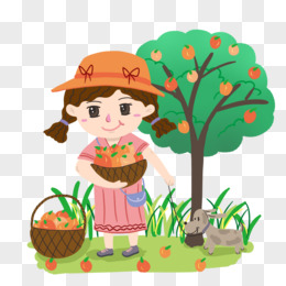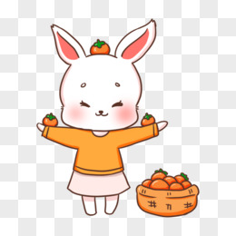 卡通手绘可爱不同月份兔兔场景系列之十月摘柿子元素