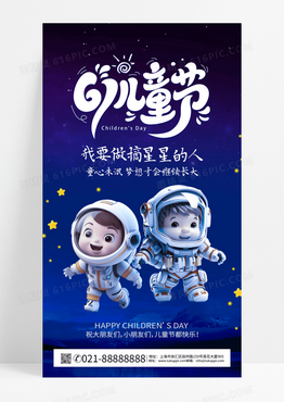 儿童节快乐蓝色星空61儿童节摘星星的人节日宣传海报