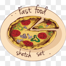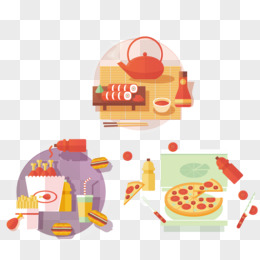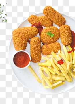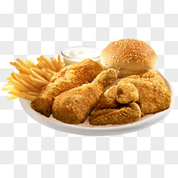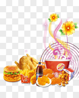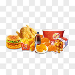 一组手绘写实汉堡炸鸡快餐食物套图元素