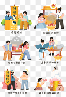 创意插画破除封建迷信家风家训免抠元素