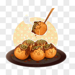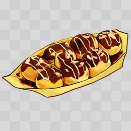 一组手绘水彩风日本代表小吃合集之章鱼小丸子素材