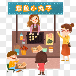 卡通手绘免抠老板娘做章鱼小丸子素材
