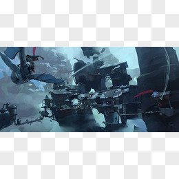手绘纷争战舰场景