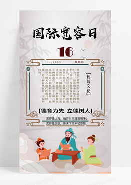 节日节气国风水墨中国风11月16日国际宽容日手机展示手机宣传海报