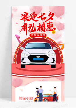 粉色浪漫简洁约惠情人节情人节汽车销售长图汽车大作战手机长图