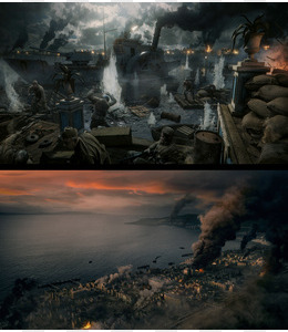 手绘写实风硝烟战争革命战士伏击举枪元素