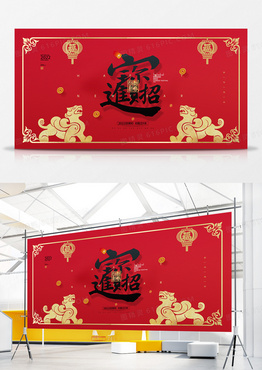 红色简约中国风2022招财进宝虎年展板设计