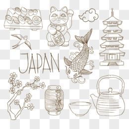 一组手绘矢量插画风日本代表性合集之招财猫元素