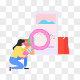 手绘卡通女孩拿放大镜查看地球仪免抠元素