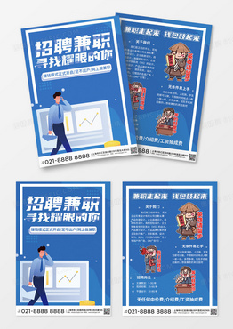 蓝色插画简约大气招聘兼职海报宣传单模版广告设计招聘兼职宣传单设计