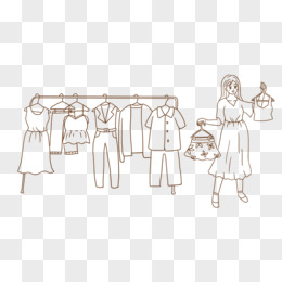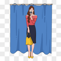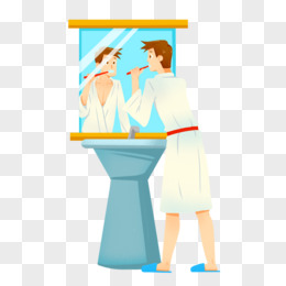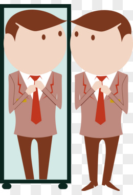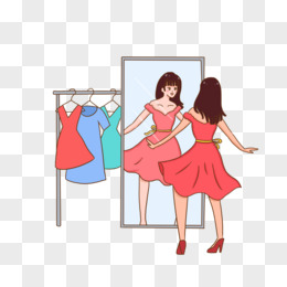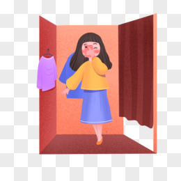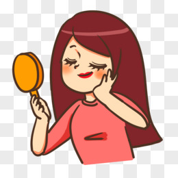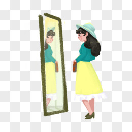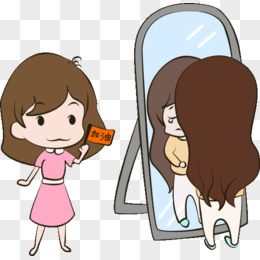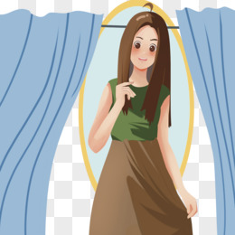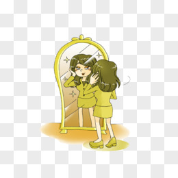 卡通手绘女孩早起穿衣服照镜子免抠元素