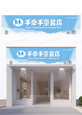卡通时尚手牵手童装店服装店门头招牌童装店门头招牌