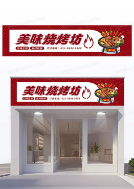 简约红色大气烧烤店面招牌门头烧烤坊烧烤店烧烤门头
