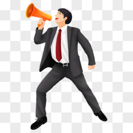 手绘卡通职场人物拿着喇叭喊免抠素材