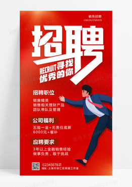 卡通红色风格招聘销售招聘手机宣传海报