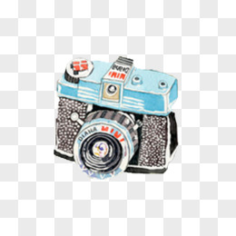 手绘合成蓝色照相机