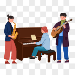 手绘卡通大学吉他社团免抠素材