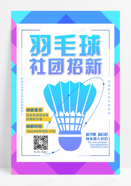炫彩立体字羽毛球社团招新海报羽毛球社招新