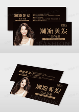 高端时尚五折卡美容美发优惠券打折卡代金券模板