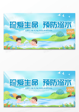 蓝色卡通珍爱生命预防溺水宣传展板设计