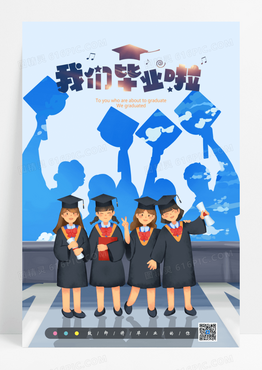 蓝色创意简约毕业季正负形设计宣传海报